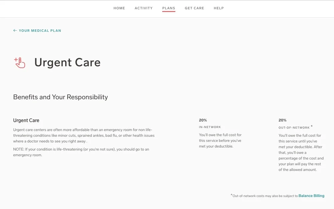 Ongoing project: Collective Health’s member portal acts as a one-stop shop for all of your health benefit information. For four years, I touched every corner of the experience and wrote many iterations. For this highlight, I will focus on the benefit details experience and the benefit descriptions.