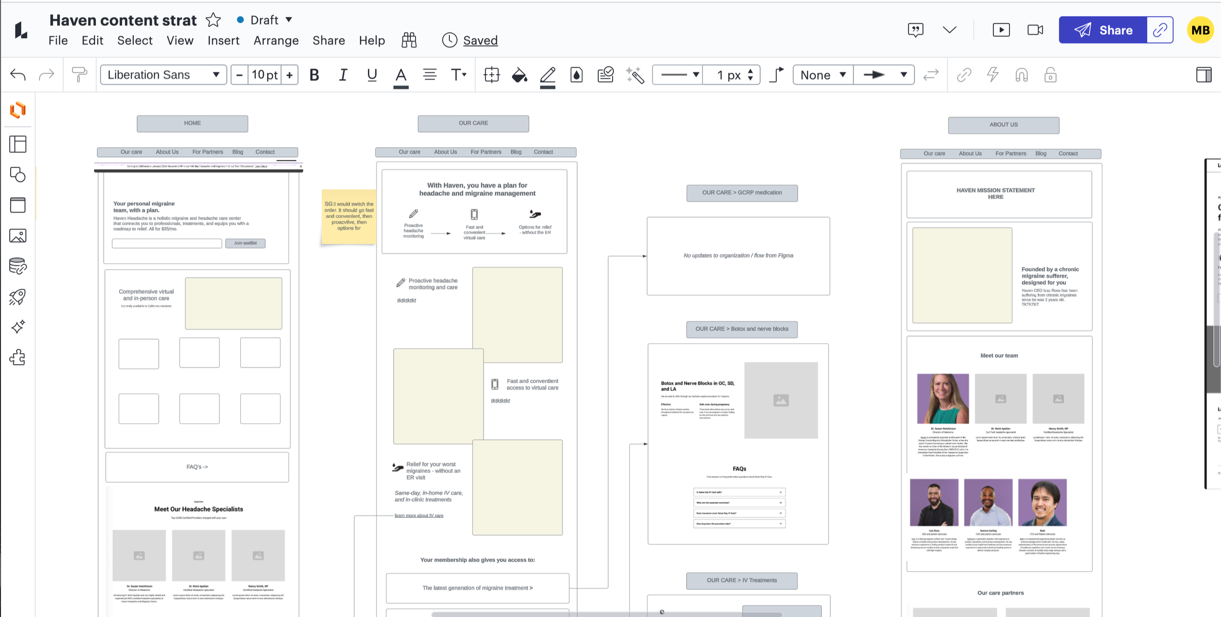 Problem: Haven is a headache and migraine care specialist service provider that partners with clinicians and other services to help women in California, Oregon, and expanding. The founders contacted me to provide a fine-tune of their client and partner-facing service site before launch in 2023.